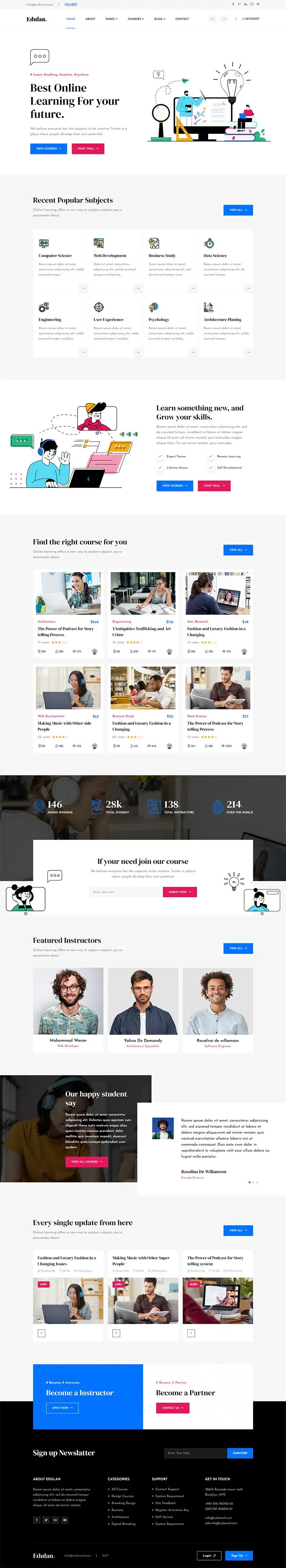 这是一款专为网络课堂和线上教育设计的HTML模板,它提供了完整的网站解决方案,包括首页、课程分类、教师介绍、学员评价、在线测试等页面。该模板设计简洁大方,色彩搭配协调,符合网络课堂和线上教育的特点。同时,该模板还支持响应式布局,可以适应不同的屏幕尺寸,方便用户在不同设备上访问。此外,该模板还提供了多种课程分类和在线测试功能,方便用户选择适合自己的课程和进行自我测试。总之,这是一款功能齐全、美观大方的网络课堂和线上教育HTML模板,适合各类网络课堂和线上教育机构使用,帮助他们提升教学质量,吸引更多学员的关注和报名。