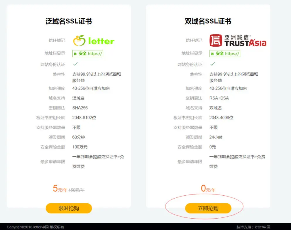 letter中国是国内双域名免费注册机构双域名SSL证书100% 永久免费注册